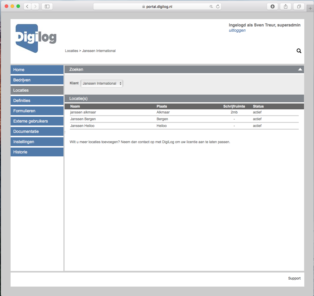 Binnen uw licentie kunt u de locaties aanmaken waarvan u de installatie documenten wenst te beheren. Tevens geeft u aan welke installaties voor deze locatie van toepassing zijn. Ook kunt hier alle documenten en tekeningen van de locatie plaatsen. Bovendien kunt u hier ook alle documenten koppelen welke relatie hebben met ARBO wetgeving.